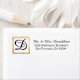 Elegante Rücksendeadressen-Aufkleber in weißen und schwarzen Buchstaben und doppelte Imitate quadratische goldene Rahmen. Initialmonogramm des Buchstaben Fügen Sie diese zu Ihren Umschlägen hinzu, um eine Touch Klasse hinzuzufügen. Perfekt für jeden Anlass; Hochzeit, Geburtstag, Ankündigung, Abschluss. Bearbeitbare Vorlagen - Fügen Sie Ihre eigenen Informationen hinzu. In der Sammlung "ADDRESS RETURN LABELS" gefunden