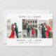 Eine moderne und vereinfachende Hochzeit speichern Sie die Datumskarte, die mit Schriftzeichen und 3 anpassbaren Fotos entworfen wurde. Personalisieren Sie Ihre zukünftigen Hochzeitsinformationen auf der Vorder- und Rückseite der Karte.