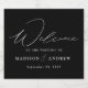 Die modernen Hochzeitsmarken mit dem Titel "Welcome" werden in einem eleganten weißen Kalligrafieschrift auf schwarzem Hintergrund präsentiert. Personalisieren Sie die schwarz-weißen Schaumweinetiketten mit Ihren Namen und Ihrem Hochzeitstag. Die schlichten Hochzeitsmarken eignen sich hervorragend für Hochzeitsfeiern, Proben und Verlobungsfeiern.