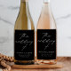 Moderne, elegante Script Black and White Wedding Weinetikett