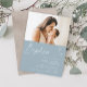 Moderne elegante Script Dusty Blue Foto Taufe Einladung. Klicken Sie auf die Schaltfläche Personalisieren, um dieses Design mit Ihren Details anzupassen. Um die Farben und Schriftart zu ändern, wählen Sie dieses Design weiter bearbeiten, um zusätzliche Optionen für die Anpassung zu öffnen.