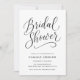 Angenehme Liebhaber zu feiern die Braut-zu-sein mit dieser eleganten Skript Brautdusche Einladung. Der moderne schwarze Kalligraphie-Schriftart, gepaart mit einem weißen Hintergrund, schafft einen zeitlosen und raffinierten Look. Personalisieren Sie Ihre Daten für eine schicke Einladung, die zu jedem Brautparty-Thema passt. Besuchen Sie die komplette Auflistung für weitere passende Artikel, um Ihre Veranstaltung abzuschließen.