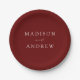 Moderne, elegante Script Burgundy Wedding Pappteller