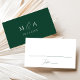 Moderne Hochzeitsskripte mit einem dunkelgrünen Kalligraphieskript auf weißem Hintergrund. Auf der Rückseite der grünen Platzkarten sehen Sie Ihre Monogramm-Initialen mit Ihrem Hochzeitstermin. Die eleganten Script-Platzkarten eignen sich hervorragend für moderne Hochzeitsfeiern, Probe-Dinners und andere besondere Anlässe.