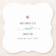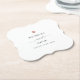Moderne Hochzeitsfeier begünstigen den Untersetzer auf Papier mit Ihren individuellen Namen in eleganter Wirbler Schrift-Kalligraphie, den Namen des Ehepaares und dem Datum Ihrer Feier. Das ist die minimalistische Schwarz-Weiß-Version mit einem goldenen, bedruckten Rose-Herzstück. Ideal auch für Brautpartys, Verlobung oder Junggeselinnen-Abschiede.