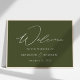 Elegantes Begrüßungsschild mit "Welcome" in einem weißen, modernen Kalligrafieschrift mit einem olivgrünen Hintergrund (oder Farbe Ihrer Wahl). Personalisieren Sie das Hochzeitsposter, indem Sie Ihre Namen und das Hochzeitsdatum hinzufügen. Das olivgrüne Begrüßungsschild wurde entworfen, um sich mit unserer Hochzeitskollektion "Moderne Elegance" abzustimmen und ist in anderen Farben erhältlich.