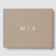 Elegantes Hochzeitsguestbook mit "Gästebuch" in einem modernen, weißen Kalligrafieschrift auf taupe Hintergrund. Personalisieren Sie die Front des einfachen Hochzeitsgast-Buches mit Ihren Namen und Hochzeitsdatum. Auf der Rückseite des taupe Gästebuches werden Ihre Monogramm-Initialen angezeigt. Fügen Sie Ihren verheirateten Namen und Ihr Hochzeitstermin dem Rückgrat des Gästebuches hinzu.