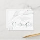 Dieses elegante, minimalistische silberne Blätter Aquarell Save the Date Postcard zeichnet sich durch ein schlichtes modernes Design eines silbernen weinenden Feigenzweiges vor weißem Hintergrund aus, wobei "Save the Date" in elegantem Schriftzeichen auf der Vorderseite geschrieben ist. Dieses gepflegte und frische Design eignet sich ideal für Hochzeiten im Sommer wie im Winter. Personalisieren Sie den Rücken mit Ihren Informationen, um eine stilvolle und unvergessliche Ankündigung für Ihren besonderen Tag zu erstellen.