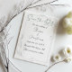 Diese elegante minimalistische Save the Date-Karte zeichnet sich durch ein einfaches, modernes Aquarellbild silberner Feigenzweige mit weißem Hintergrund aus. Mit Ihren Vorder- und Rückwärtsinformationen für ein Foto ist dieses Design perfekt für anspruchsvolle Hochzeiten auf Naturbasis. Das gepflegte und frische Design eignet sich ideal für Hochzeiten im Sommer, während das knallige Weiß- und Silberfarbschema auch für Winterhochzeiten geeignet ist. Machen Sie Ihren besonderen Tag noch unvergesslicher mit diesen stilvollen speichern Sie die Datumskarten.