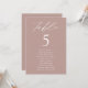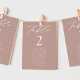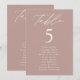 Elegantes Hochzeitssitzdiagramm mit "Tisch", das in weißem Kalligrafieschrift mit der unten abgebildeten Tischnummer und den Gästennamen auf einem staubigen Hintergrund der Rose angezeigt wird. Das Design wiederholt sich auf der Rückseite. Um das Sitzdiagramm der Tischnummer zu bestellen, editieren Sie jede Karte mit der Tischnummer und den Namen der Gäste und fügen Sie es Ihrem Warenkorb hinzu. Entworfen, um mit unserer Hochzeitskollektion "Moderne Elegance" zu koordinieren.