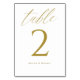 Elegante und moderne Tischnummern der Goldhochzeit - Diese eleganten Hochzeitsfeiern sind mit einer romantischen Goldkalligraphie-Schrift versehen. Ändern Sie Ihre Namen und fügen Sie sie Ihrem Warenkorb individuell hinzu.