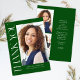 Green Modern Elegant Vertikal Drei Foto Abschluss Dankeschön Sie Card bietet einen lustigen und modernen Typ, zusammen mit Ihrem Abschluss Foto. Fügen Sie Ihre Dankeschön auf der Rückseite hinzu, oder verlass leer für eine handgeschriebene Nachricht.