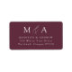 Elegante Hochzeitsstipps mit den Monogramm-Initialen des Ehepaares, getrennt durch einen Ampersand, der in einer weißen Kalligraphie-Schrift auf einem weinlila Hintergrund dargestellt ist. Personalisieren Sie die monogramm Hochzeit Rücksendeadressen-Aufkleber mit Ihrer Adresse unten. Die Labels eignen sich hervorragend für Hochzeiten, Brautpartys und andere Veranstaltungen.