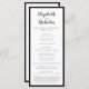 Das moderne Elegance Black and White Wedding Program beinhaltet die Namen der Paare in schöner Kalligrafie, umgeben von einem minimalen schwarzen Rand. Personalisieren Sie Ihre Hochzeitsfeierlichkeiten Details. Dieses Design ist in verschiedenen Formaten und begleitenden Hochzeitseinladungen und Veranstaltungsprodukten erhältlich.
