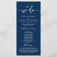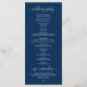 Herzlich willkommen in unserer Hochzeitstypografie, dem eleganten, modernen Romantik Navy Blue-Script, dem Programm zur Hochzeitsfeier. Es ist mit Scrollakzent entworfen, der personalisiert werden kann mit benutzerdefiniertem/personalisiertem Text für Ihr Brautparty, Zeremonie Details, Gedenkhinweise und Dankeschön-Nachricht. Wenn Sie weitere Programmkarten-Typen und -Größen suchen, durchsuchen Sie bitte unseren passenden Programmkartenabfrageabschnitt.