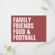 Das ist eine mutige Einladung an den Erntedank. Der weiße Typ auf der Vorderseite liest "Familienfreunde essen & fußball" vor festlichem mauvem Hintergrund - beides ist anpassbar. Auf der Rückseite ist Platz für alle Party-Details in passender fett roter Schrift. Dieses moderne Erntedank Postcard lädt Sie ein, Freunde und Familie zu einem Erntedank-Dinner einzuladen. Auch perfekt als ein freundliches Dinner Einladung!