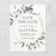 Moderne Eukalyptus-Blumenhochzeit rettet das Datum Postkarte