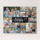 Moderne FAMILY 16 Foto Collage Script Heart Jigsaw Puzzle. Bringen Sie Familienspass und Erinnerungen mit diesem personalisierten Puzzle mit dem Titel FAMILY in moderner Schrift-Typografie mit einem Herzschlag. 16 Ihrer Lieblingsfamilien-Fotos sind dabei. Dieses Rätsel wurde mit einer leicht hochzuladenden Collage-Vorlage für Fotos mit quadratischen und rechteckigen Bildern in verschiedenen Größen und personalisiert mit Ihrem Familiennamen in der Textauswahl, der Grafik und den Hintergrundfarben (in Weiß auf Schwarz dargestellt) entworfen und ist sowohl ein Sake als auch eine Aktivität, die Sie genießen können. Ideal für Spielabende, Ferien oder als nachdenkliches Geschenk, ist es eine einzigartige Möglichkeit, ganz besondere Momente Stück für Stück zu erleben. PUZZLE OPTIONEN: Das Muster ist in der Größe von 16x20" mit 520 Stück dargestellt; weitere Größen und Stückzahlen sind auf der Bestellseite verfügbar. HILFE: Für Hilfe bei der Designänderung oder der Übertragung des Designs auf ein anderes Produkt, kontaktieren Sie den Designer VOR der Bestellung über die Zazzle Chat MESSAGE Registerkarte oder E-Mail makeitaboutyoustore@gmail.com.
