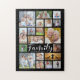 Erschaffen Sie sich einfach eine lustige Familienaktivität oder eine Freizeitbeschäftigung voller Erinnerungen mit diesem modernen Foto Collage Puzzle mit einer Vielzahl von Größen und Formen für 19 Fotos und der Titel FAMILY in einem schicken handgeschriebenen Drehbuch-Schriftart, gepunktet mit einem Herzen und personalisiert mit dem Familiennamen. FOTO TIPP: Wählen Sie für schnellste/beste Ergebnisse ein Foto mit dem Thema in der Mitte und/oder vor dem Hochladen auf eine ähnliche Form wie vor dem Hochladen. ÄNDERUNGEN: Ändern Sie die schwarze Hintergrundfarbe und/oder ändern Sie den Schriftart Stil, die Größe, die Farbe oder die Platzierung, indem Sie auf ANDERE KLICKEN. Kontaktieren Sie den Designer über den Zazzle Chat oder makeitaboutyoustore@gmail.com , wenn Sie dieses Design modifiziert oder auf einem anderen Produkt möchten.