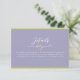 Erleben Sie das Wesen moderner Eleganz mit unserer minimalistischen Hochzeitskarte. Diese Karte strahlt Eleganz aus und bietet fette, helle, sonnenorange, pastellfarbene lila Akzente, die Ihrem Hochzeitsensemble eine lebendige Touch verleihen. Diese Karte mit einem glänzenden goldenen Seil-Herz, das die dauerhafte Bindung zwischen Ihnen und Ihrem Partner symbolisiert, spiegelt Ihre Liebe wider. Die einfache Schrift vermittelt elegant alle wesentlichen Details und sorgt dafür, dass Ihre Gäste mit zeitlosem Charme informiert werden.