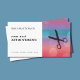 Moderne, individuell anpassbare Terminkarte für Haarstylisten. Design mit abstraktem Hintergrund und schwarzer Schere.