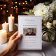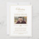 Moderne Feier des Lebens Beerdigung Imitats Gold Foto Einladung. Moderne Feier des Lebens Beerdigung weiß & Gold Foto Einladung. Einfach zu bearbeiten Gedenkeinladung mit zwei Fotos vorne und hinten in Marineblau und Imitat Gold. Personalisieren Sie Sofort Download digitale Beerdigung Einladung mit Bildern.