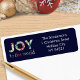 Mit diesen eleganten Labels heben Sie Ihre Urlaubshüllungen auf. Ideal für Weihnachtsgeschenke und -karten. Auf den Etiketten steht die festliche Nachricht "Joy to the world" auf einem dunkelblauen Hintergrund. Um Ihren Namen und Ihre Adresse auf der rechten Seite hinzuzufügen, klicken Sie auf 'Personalisieren' und geben Sie Ihre Daten ein.