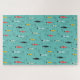 Farbenfrohe Puzzles mit modernen Fischdoodles auf Aqua-Hintergrund