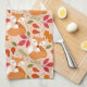 Adorable Füchse, die in einem modernen Akzent der Volkskunst gerendert werden, umgeben von Herbstblättern und Früchten vor einem bräunlichen Hintergrund