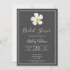 Ein einfaches modernes Design mit symbolischer Blume, weißem Schriftzeichen und einer weißen Kontur auf dunkelgrau. Die Rückseite hat alle Einzelheiten der Hochzeit, personalisieren Sie die Front und zurück zu den Details Ihres besonderen Tages. Ein klassischer Look für eine formelle Angelegenheit. Matching Style auf Brautparty, UAWG, Save the Date und mehr. Die hawaiianische Lei-Blume Plumeria ist ein Symbol für "Neuanfang".