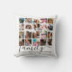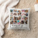 Moderne Familienkissen mit einer 20-Foto-Collage von Ihnen, Ihrer Familie und Freunden, und das niedliche Sprichwort "Familie ist jeder, der Sie bedingungslos Lieben" in einem trendigen Drehbuch und Serif-Schriftart.