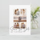 Mit fünf Fotos und einem "Save the Date" geschriebenen modernen Drehbuch ist diese Karte der perfekte Weg, um Ihre Verlobung und kommende Hochzeit zu Freunden und Familie zu verkünden. Der schwarze Text ist fett und modern, aber dennoch raffiniert. Der anpassbare Text auf der Vorderseite hat Platz für Namen, Datum, Ort und andere Informationen wie eine Hochzeitswebsite. Die Vorderseite hat 4 quadratische Foto und ein horizontales Foto. Die Rückseite ist ein schwarz-weiß gestreiftes Muster. Die schwarze Farbe kann bearbeitet werden, indem Sie auf "Anpassen" klicken.