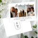 Moderne, minimale Collage Foto Hochzeit Einladung. Design bietet 3 Fotos, Ihre Namen in trendiger handgeschriebener Schrift, Hochzeitsdetails auf der Vorderseite und trendige Monogramm auf der Rückseite.