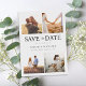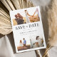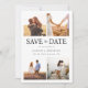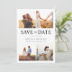 Erstellen Sie Ihre eigene Hochzeit speichern Sie die Datumskarten mit 4 Ihrer Lieblings-Fotos. Modernes typografisches Design mit einfacher 4-Foto-Collage.