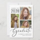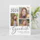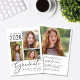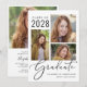 Moderne Abschluss-Ankündigung und Party Einladung mit einer 3-Foto-Collage und "Graduate" in einer eleganten Schrift und den Namen des Absolventen, das Klassenjahr und die Schule oder Universität in einfacher Typografie. Auf der Rückseite fügen Sie ein zusätzliches Foto und die Details der Graduierungsparty hinzu.