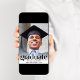 Eine elegante Graduiertenparty, die das Foto des Absolventen mit "Graduate" in trendigen Großbuchstaben und ihren Namen, Schule und Klassenzimmer in einfacher Typografie präsentiert. Fügen Sie auf der Rückseite ein zusätzliches Foto und Ihre Party-Details hinzu.