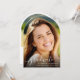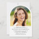Feiern Sie Ihren Absolvent mit einer eleganten, bogenförmigen Abschlussfeier mit ihrem Foto, das mit "Absolvent" in einem stilvollen weißen Drehbuch mit Swashes und deren Namen, Schule und Klassenzimmer in der modernen weißen Typografie überlagert wird. Fügen Sie ein zweites Foto auf der Rückseite hinzu und personalisieren Sie Ihre Graduiertenparty-Details.