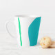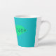 Diese moderne Design-Tasse zeigt grüne Farben und das Wort "frappe" in blau, in der Mitte.