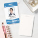Ein modernes Freiwilligenausweis-Abzeichen für Wohltätigkeiten, Krankenhäuser, Kirchen, Veranstaltungen und Kongresse. Die Vorlage für das freiwillige Abzeichen enthält ein ID-Foto Ihres Freiwilligen, eine ID-Nummer sowie ein Abzeichen-Ablaufdatum. Der Gruppenname "ehrenamtlich" wird am unteren Rand deutlich angezeigt, wobei ein Pfeil wie das Design darauf hinweist. Es enthält auch eine optionale Gruppe Slogan "Frag mir! Ich bin hier, um zu helfen." Die Rückseite des freiwilligen ID-Abzeichens wird vorsätzlich leer verlassen und steht Ihnen offen, um weitere Informationen über den Freiwilligen und Ihre Organisation oder Veranstaltung hinzuzufügen.