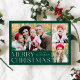 Einfache und elegante Urlaubskarte mit einer 3-Foto-Collage auf der Vorderseite mit "Frohe Weihnachten" in weißer, moderner Schrift auf grünem Hintergrund. Personalisieren Sie die Kartenvorderseite, indem Sie Ihre Fotos und Ihren Namen hinzufügen. Die Karte kehrt um, um das vierte Foto mit einem weißen Schneeflockenmuster anzuzeigen. Die Multi-Foto-Ferienkarte ist ideal, um alle Ihre Lieblings-Fotos anzuzeigen!