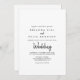 Diese moderne Vorzelt- und Hinterzimmereinladung ist ideal für eine rustikale Hochzeit. Das einfache und elegante Design ist mit klassischer und extravaganter Schrift-Typografie in Schwarz und Weiß ausgestattet.
