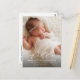 Diese elegante Geburtsankündigung auf der Postkarte enthält das Wort "hello", das in einem schönen weißen Kalligrafieschrift geschrieben ist. Fügen Sie unter dem Skript den Namen, das Geburtsdatum und die Geburtsdaten Ihres Babys hinzu. Sie können auch ein vollformatiges Foto Ihres Neugeborenen hinzufügen. Auf der Rückseite finden Sie eine Vorlage zum Hinzufügen einer benutzerdefinierten Nachricht.