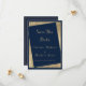 Eine moderne geometrische Marineblau und Imitate Gold Wedding Save The Date Einladung.Diese Luxus-Marinebräu und Goldhochzeit speichern das Datum Einladungen ist perfekt für jedes elegante und raffinierte Glam Mädchen. Dieses Design eignet sich perfekt für das trendige und stilvolle Party-Event. Passen Sie dieses Design mit Ihren eigenen Nachrichten und personalisierten Informationen an. Alle Designs sind gedruckt.