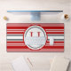 Das Design der Tischmatte zeichnet sich durch ein wunderschönes, rotes, graues und weißes Streifenmuster aus, in dem Sie ein personalisiertes Monogramm hinzufügen können. Perfekt für die Darstellung mit Teamfarben, oder einfach nur gut aussehen! Macht ein großartiges Geschenk. Erstellt von der einfachen Farmhouse Press.