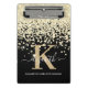 Elegant, Glam, Bling, Sparkle Girly Shiny Imitate schwarz und golden Glitzer Diamant Konfetti Custom personalisierte mit Monogramm Mini-Zwischenablage. Mit einem gelben goldenen Imitat Diamanten Konfetti auf schwarzem Hintergrund. Hübsche Vorlage für die Unterschrift von Vornamen in handgeschriebenem Kalligrafie-Swash-Schwanz-Schriftart-Skript. Einfach zu personalisieren Ihren Namen und Monogramm Initial. Bitte beachten Sie: dieses Design ist ein gedruckter Foto-Effekt ohne echten Glitzer und Juwel. Perfektes weibliches Geschenk für Mädchen, Geburtstag, Hochzeit, Brautparty, Mutter, Schwester, Geschäftsleute, Geschäftsleute oder alle, die Lieben hübsche stilvolle glamouröse Stil.