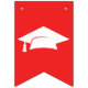 Roter Abschluss buntet Fahnen mit "Glückwunschs Grad!" in weißen Pinselskripten mit Graduierungskappen. Die Hintergrundfarbe kann in eine Farbe Ihrer Wahl geändert werden. Konzipiert, um mit unserer Abstrakten Brushstrokes Abschluss Kollektion zu koordinieren.
