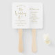 Moderne, in Gold und Weiß gehaltene Begrüßungs- und Zeremonienfans genießen ein stilvolles Typografie-Design mit schicker Kalligraphie-Schrift und Herzakzent. Der einfache und elegante Text, der auf beiden Seiten mit den Namen des Ehepaares personalisiert werden kann, ihr Hochzeitstermin und die Zeremonie der Service-Informationen. Schöne und funktionale für einen warmen Sommer Hochzeitstag.