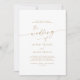 Diese moderne Goldskripteinladung ist perfekt für eine minimalistische Hochzeit. Das schlichte gelbe goldene Design zeichnet sich durch eine einzigartige industrielle Schrift mit modernem boho Stil aus. Anpassbar in jeder Farbe. Behalt das Design minimal und elegant, wie es ist, oder personalisiere es durch Hinzufügen von eigenen Grafiken und Kunstwerken.