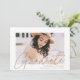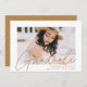 Wir laden Sie ein, den Abschluss mit unserer modernen Foto-Abschlussfeier zu feiern. Die trendy Graduierungsparty lädt das Foto des Absolventen mit "Graduate" in einem goldenen, modernen KalligraphieskriptOverlay ein. Personalisieren Sie die Front der Einladungen, indem Sie den Namen des Absolventen, die Schule und Abschluss Jahr. Die Einladung kehrt zurück, um Ihre Graduiertenparty Details und ein trendiges geometrisches Muster aus Gold und Weiß anzuzeigen.