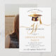 Feiern Sie Ihre Errungenschaft stilvoll mit dieser modernen Graduiertenparty-Einladung. Freuen Sie sich auf ein schlankes Design mit einer goldenen Graduierungskappe und einem Topper sowie elegante Goldskriptkalligraphie-Initialen. Das gepflegte Design verleiht dem Hotel eine Touch von Eleganz. Gold und schwarz. Erhältlich in Print, als digitaler Download, oder beides.